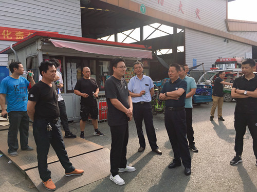 一行人由水果區(qū)南門進(jìn)入,在水果區(qū)經(jīng)理解雪峰及管理人員的陪同下依次對(duì)水果大廳、店面房、交易大棚等銷售區(qū)域進(jìn)行了巡查工作。在巡查過程中,徐總指出安全作為日常工作中的重點(diǎn),不可忽視,消防安全、食品安全等方面都需要加以重視。其次,交易區(qū)內(nèi)的環(huán)境衛(wèi)生不可放松,不僅僅是地面衛(wèi)生,一些經(jīng)營(yíng)戶板房上面堆積的雜物也要進(jìn)行清理,防止隱患的發(fā)生。